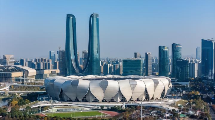 根据介绍,杭州奥体中心体育场,外号“大莲花”,为杭州亚运会主体育场及田径项目比赛场地,场馆造型取意于古老丝绸纹理与编织体系,建筑体态源于钱塘江水的动态。