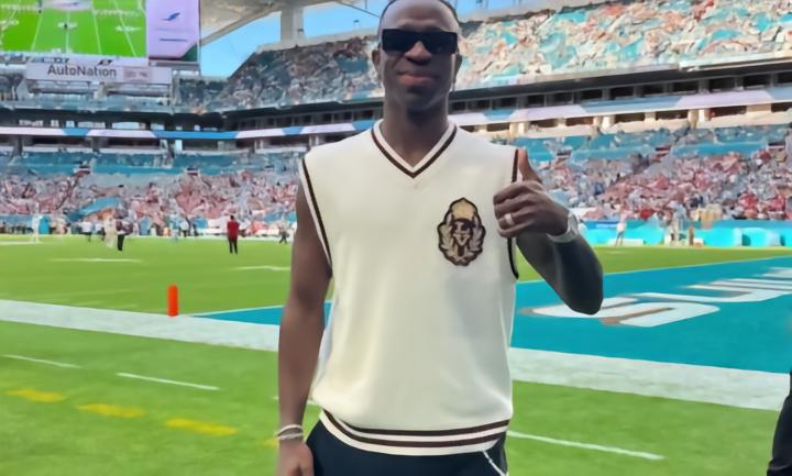 在皇马与塞维利亚的比赛结束后,迈阿密进行了一场NFL比赛。维尼修斯抵达现场,并进行了现场观看。