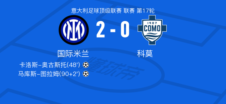 北京时间12月24日国际米兰vs科莫,恰尔汗奥卢得到全场最高的8.0分,切里得到全场最低的5.7分