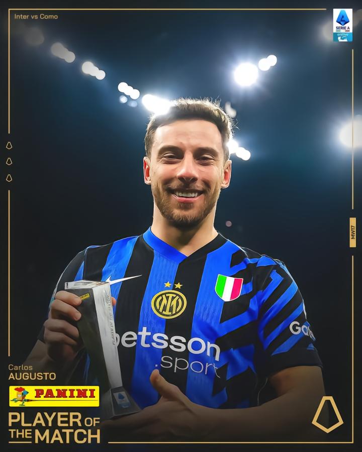 在意甲第17轮的比赛中,卡洛斯-奥古斯托的进球帮助国际米兰在主场2-0击败了升班马科莫,赛后这位巴西球星被意甲官方评选为了本场比赛的最佳球员。