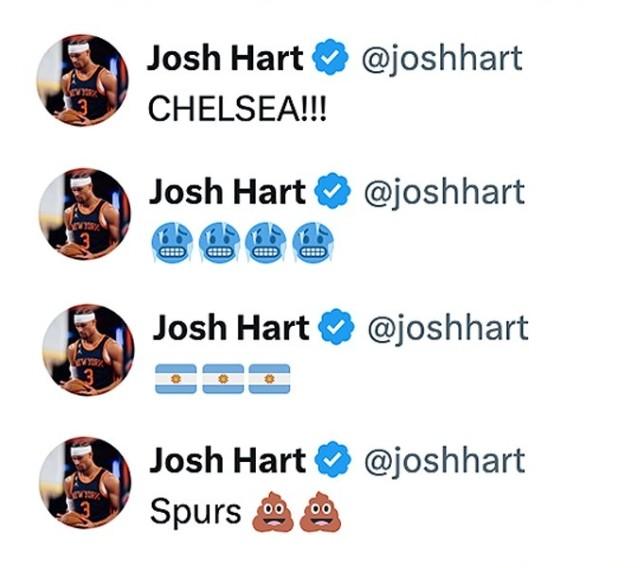 赛前,尼克斯球员哈特曾更新社媒写道:“spurs = 四坨屎”,赛后接受采访时,哈特解释道:“我说的不是圣安东尼奥马刺,而是托特纳姆热刺,他们糟透了。”