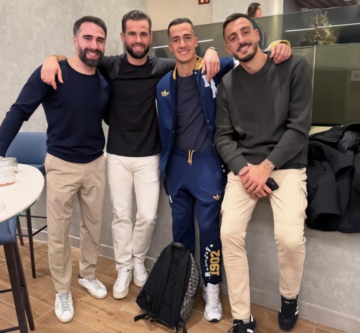 在个人社交媒体上,纳乔晒出了自己重回皇马更衣室的照片,以及与卡瓦哈尔、巴斯克斯、何塞卢的合照,并配文写道:“我的男孩们。”