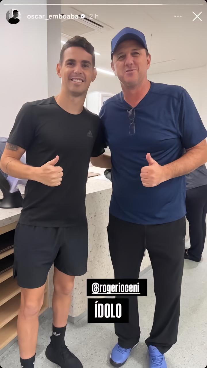 近期多家媒体表示巴西球星奥斯卡接近加盟圣保罗,今日奥斯卡在社交媒体上晒出了与圣保罗名宿切尼的合照。