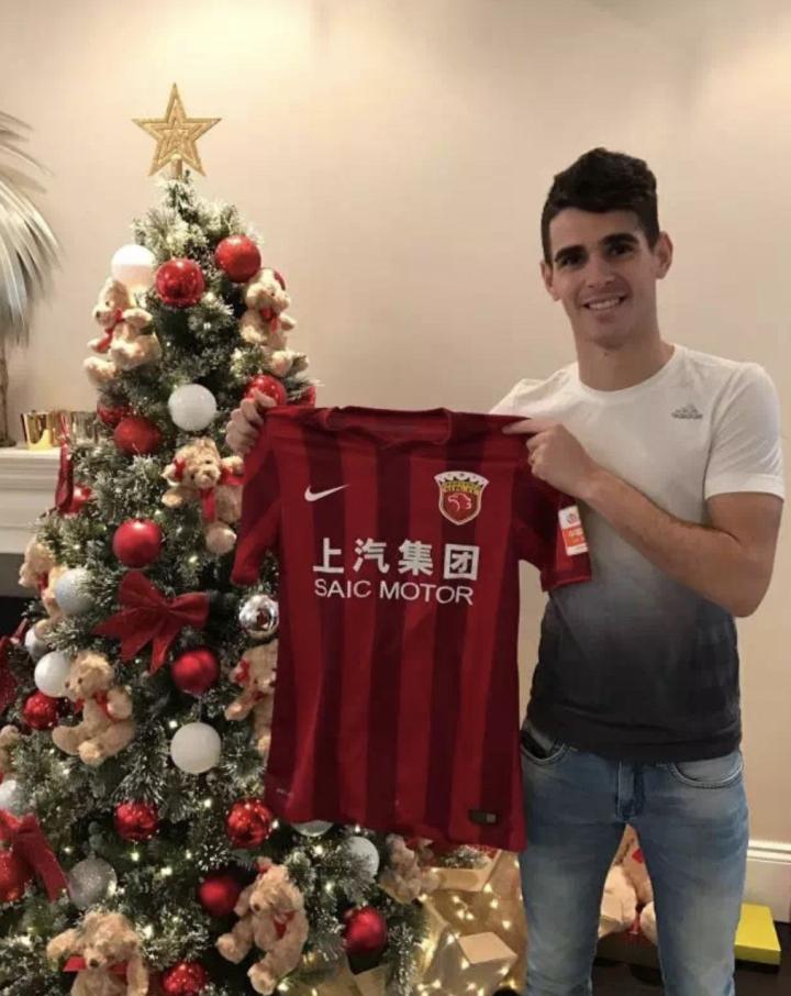 2016年12月23日圣诞节前夕,上海海港从切尔西签下了巴西球星奥斯卡,奥斯卡手举球衣与圣诞树合影的照片成为了经典。