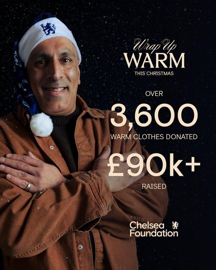 “感谢切尔西信托基金的合作以及切尔西大家庭的慷慨捐赠,共有超过3600件保暖衣物被送到最需要的伦敦人手中。感谢所有蓝军球迷,让这个圣诞节充满温暖和意义。”