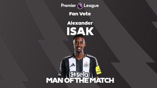 经过球迷评选伊萨克以71.1%的得票率当选本场比赛的最佳球员。