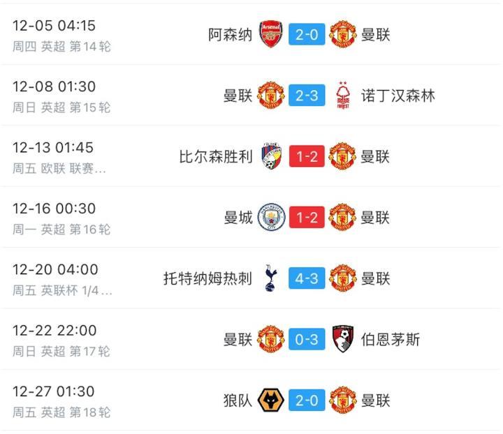 在客场0-2不敌狼队之后,曼联在短短22天内各项赛事输掉了5场之多!