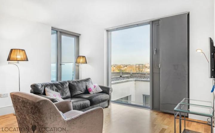这栋位于五楼的公寓拥有开放式的起居区域和配备嵌入式电器的现代化厨房,卧室和客厅都有巨大的窗户,可以欣赏到北伦敦的美丽景色,公寓内还有私人阳台,住户可以沐浴夏日阳光。