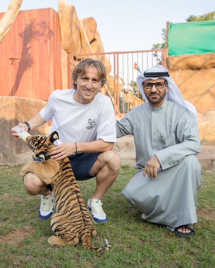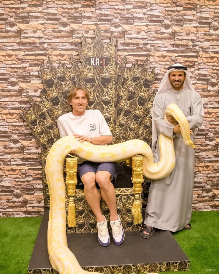 Madrid Xtra分享了莫德里奇度假期间拍摄的照片,在气候宜人的迪拜,莫德里奇身着短袖短裤,与一只小老虎和一条金色蟒蛇完成了合影。