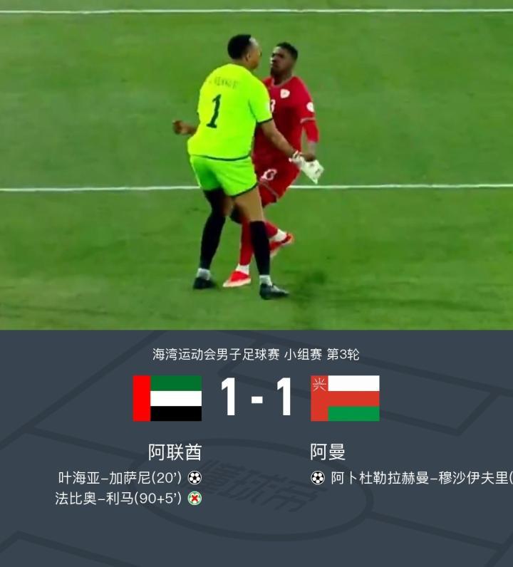 海湾杯阿曼1-1阿联酋晋级半决赛,穆沙伊夫里建功,利马失点