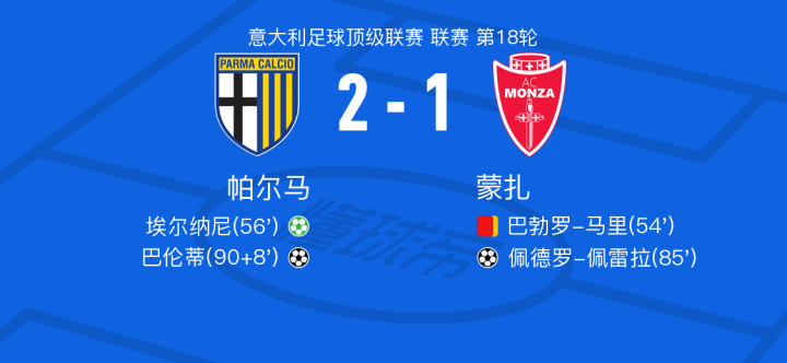 北京时间12月28日帕尔马vs蒙扎,巴伦蒂得到全场最高的8.0分,巴勃罗-马里得到全场最低的5.6分
