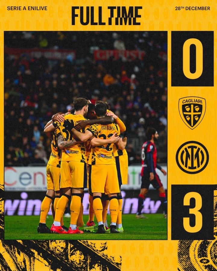 在意甲第18轮的比赛中,国际米兰依靠巴斯托尼、劳塔罗以及恰尔汗奥卢的进球客场3-0击败了卡利亚里,排名暂时升至积分榜首位。