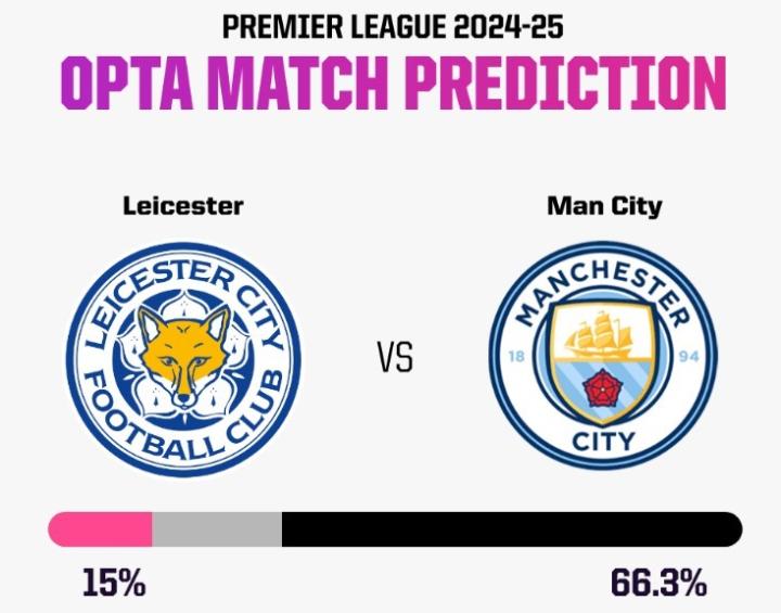 尽管曼城最近几周表现糟糕,但Opta的超级计算机预测蓝月亮会反弹,经过10000次赛前模拟后,预测出曼城赢球概率66.3%,莱斯特城取胜可能性仅有15.0%,平局概率为18.7%。