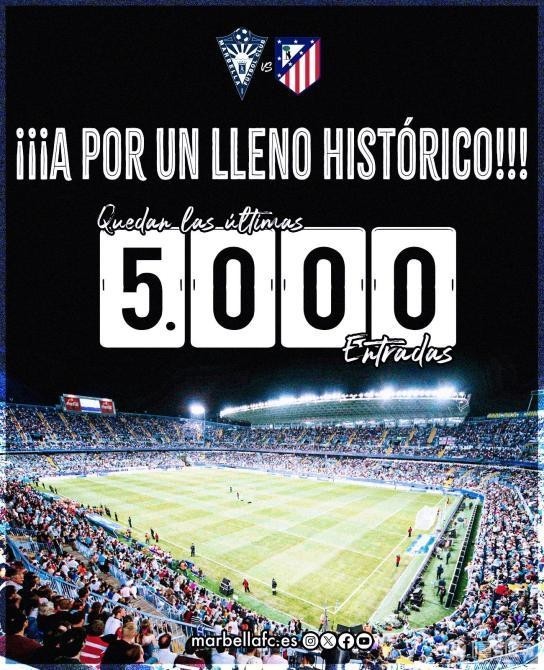 马贝拉官方宣布,主场对阵马德里竞技的国王杯比赛门票已经售出绝大部分,目前仅剩五千张票。