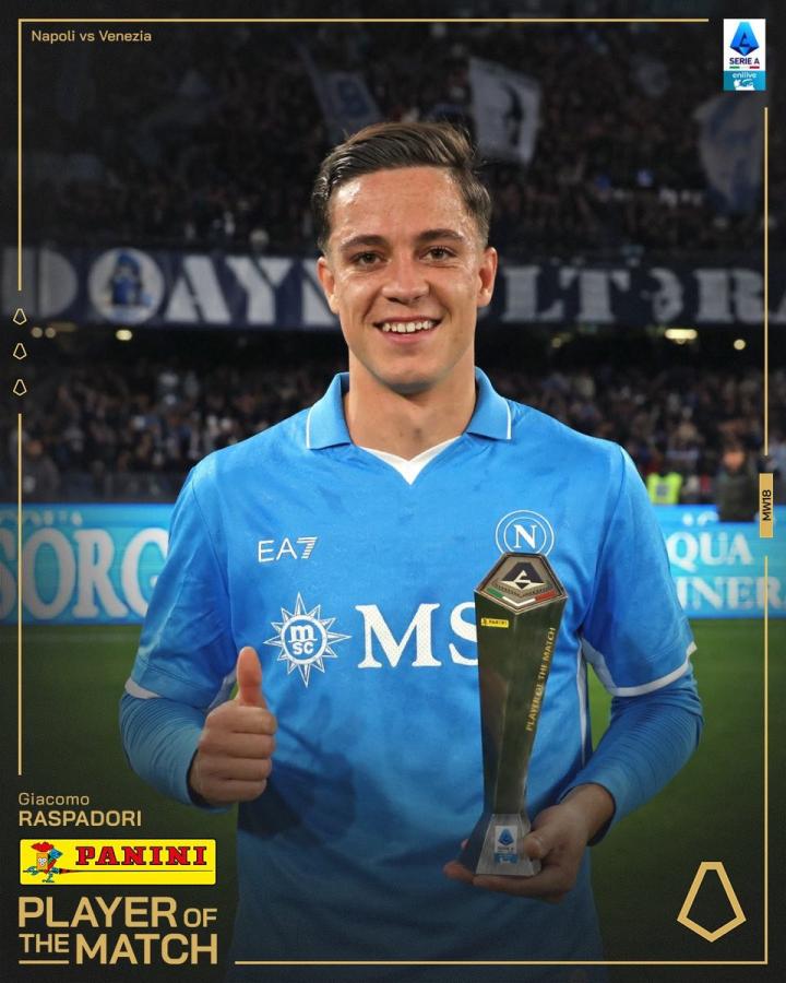 在意甲第18轮的比赛中,那不勒斯依靠拉斯帕多里打进的全场唯一进球,主场1-0小胜升班马威尼斯,积分超越少赛一场的国际米兰升回第二位,同时追平领头羊亚特兰大。赛后此战替补出场并在第79分钟打破场上僵局的拉斯帕多里最终被意甲官方评为了本场比赛的最佳球员。