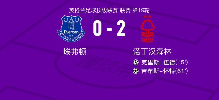 北京时间12月29日埃弗顿vs诺丁汉森林,吉布斯-怀特得到全场最高的7.9分,阿什利-扬得到全场最低的6.1分