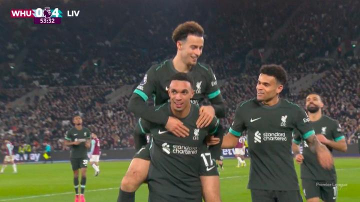此役客场对阵西汉姆联,阿诺德在下半场第54分钟远射破门,打入个人本赛季首球。