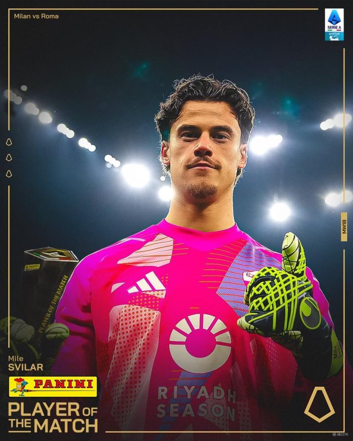 此役客场米兰,首发出战的斯维拉尔奉献了6次扑救,扑出了特奥、本纳赛尔等人的射门,帮助罗马1-1战平对手,拿到1分。