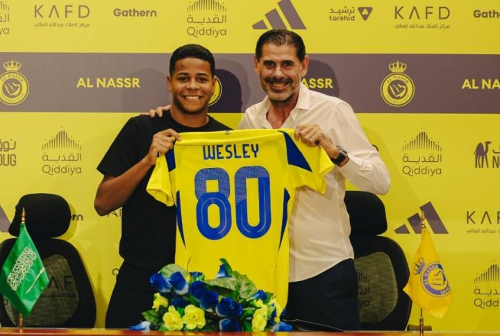 韦斯利现年19岁,来自巴西,司职前锋。在今年夏窗韦斯利以1800万欧元的转会费从科林蒂安加盟利雅得胜利。