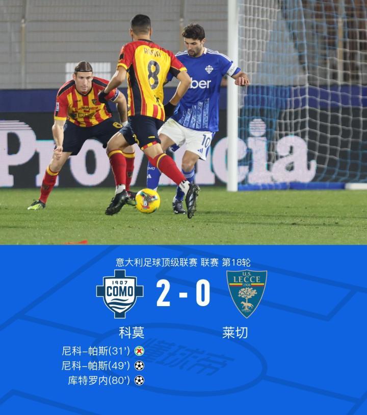 科莫2-0莱切,尼科-帕斯破门+丢点,库特罗内传射建功