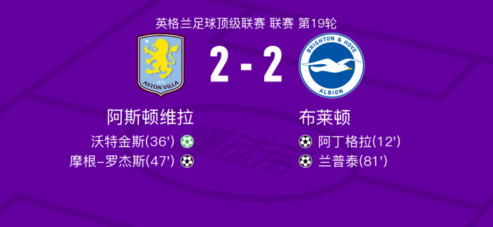 北京时间12月31日阿斯顿维拉vs布莱顿,沃特金斯得到全场最高的8.5分,恩西索得到全场最低的6.1分