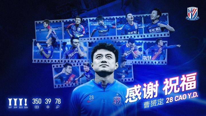 在曹赟定宣布退役后,上海申花官方送上感谢和祝福。