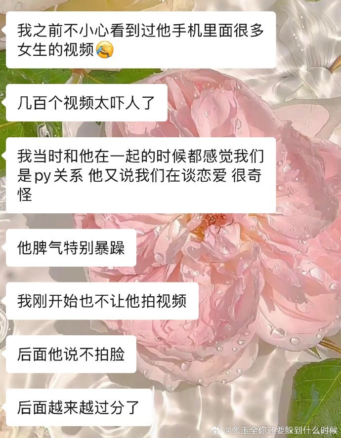 近日一位ID为“张玉全你还要躲到什么时候”的网友在社交媒体上控诉球员张玉全,称对方强行与自己发生关系,自己怀孕后又不负责任。昨日她又连续更文,称张玉全21岁就睡了几百人,不止一个怀孕的,手机里有几百个视频;之后还圈了深圳新鹏城俱乐部,质问为何国外球队球员出现这种新闻球队会直接开除球员,而新鹏城至今无声?