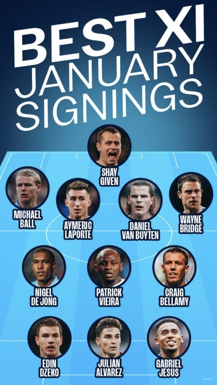 今天,曼城官网评选出了队内历史冬窗最佳引援11人,阿尔瓦雷斯、热苏斯等人在列。此外,目前曼城队内历史冬窗引援最佳11人均已不在阵中。