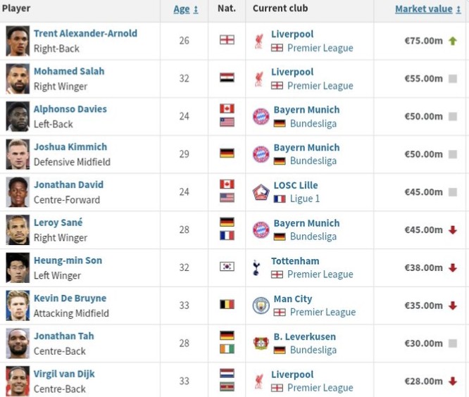 今天,德国转会市场列出了今夏身价最高的10名潜在自由球员。其中,阿诺德、萨拉赫位列前二,拜仁三将在列。