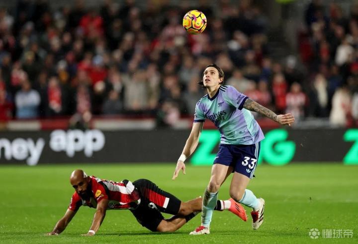 英超第19轮的一场较量中,布伦特福德和阿森纳在上半场结束之后暂时战成1-1。