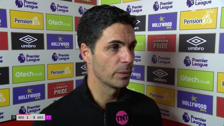率队在英超第19轮客场3-1击败布伦特福德之后,阿森纳主教练阿尔特塔接受了来自TNT体育的采访。