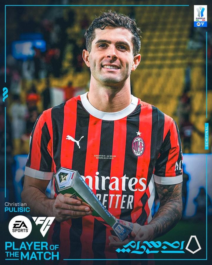 此役对阵尤文图斯,首发出战的普利希奇在下半场制造点球并亲自操刀命中,帮助米兰扳平比分,最终米兰2-1逆转取胜,挺进决赛。