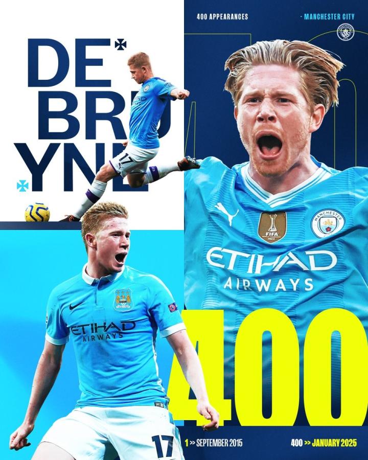 英超第20轮,曼城主场对阵西汉姆联,德布劳内首发出战,迎来曼城生涯各项赛事第400次出场的里程碑之战。