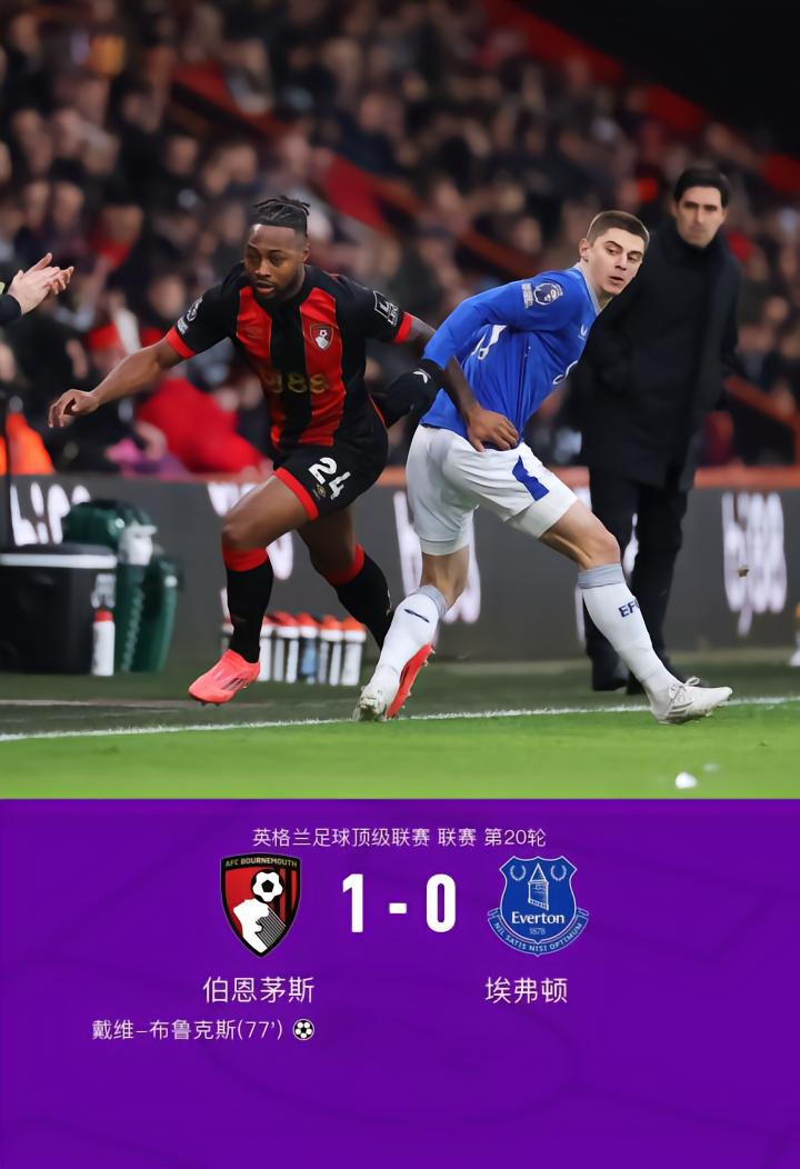 伯恩茅斯1-0埃弗顿,科尔克兹助攻戴维-布鲁克斯替补建功