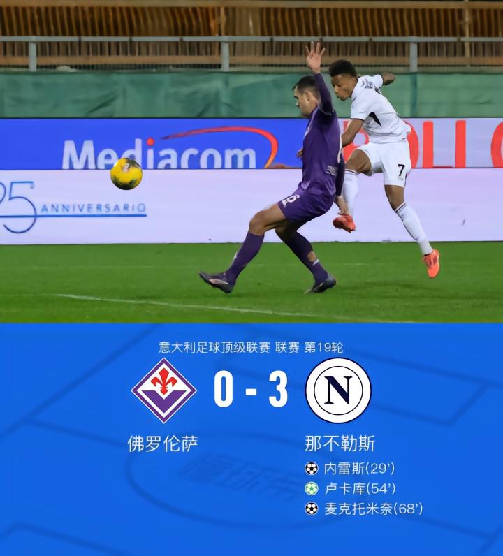 那不勒斯3-0佛罗伦萨,卢卡库传射,内雷斯、麦克托米奈破门