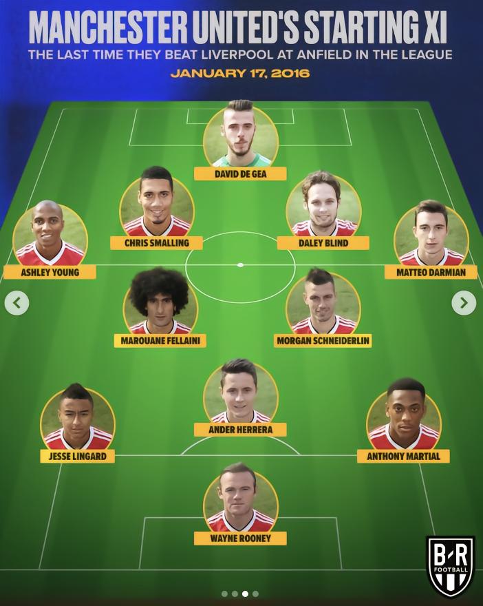 上一次曼联在英超客场战胜利物浦还要追溯到2016年1月17日,自那以后,红魔在安菲尔德球场的8次英超客场之旅中,取得了4场平局和4场败仗,一直未能再次取得胜利。
