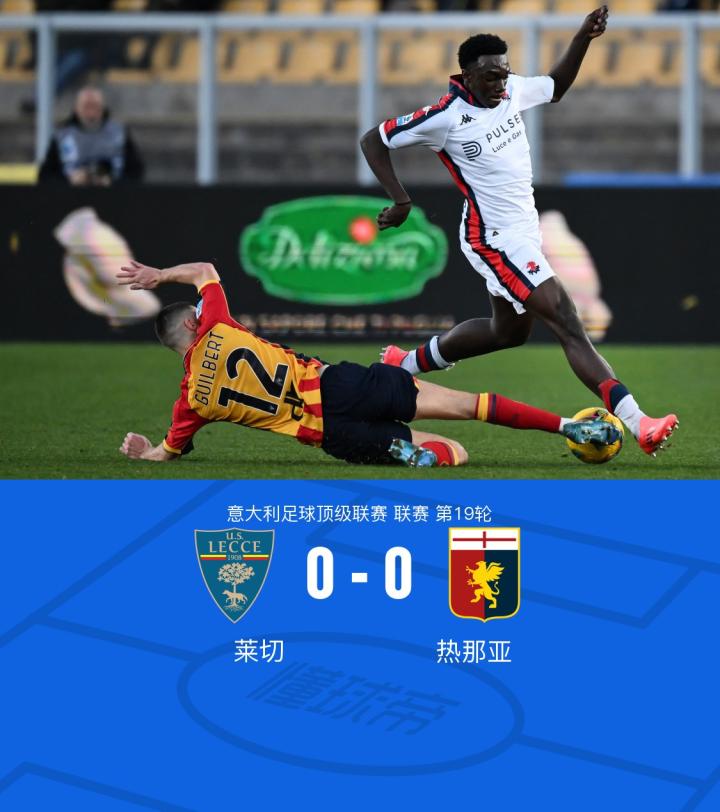 莱切0-0热那亚,双方握手言和