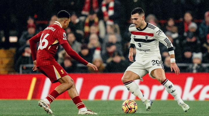 此役客场对阵利物浦,首发出战担任左翼卫的达洛特在与利物浦右后卫阿诺德对抗中表现出色。
