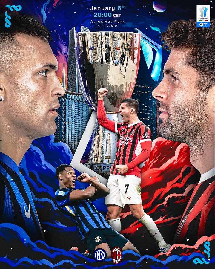 北京时间1月6日下午,意甲官方发布了意大利超级杯米兰德比的海报。
