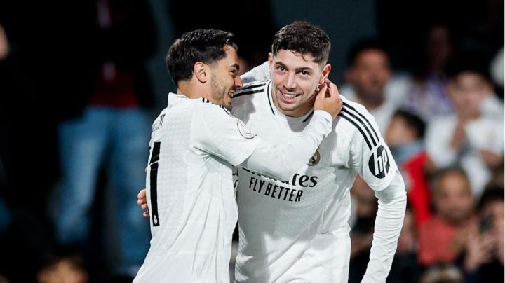 皇马中场巴尔韦德在上半场比赛中先是自己打进一球,随后又助攻居莱尔打进第三球,半场过后他已经传射建功。