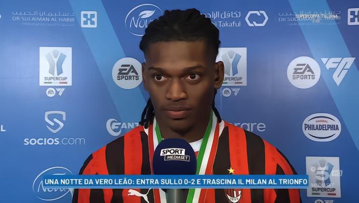 米兰在意大利超级杯决赛3-2击败国际米兰成功夺冠,为绝杀送出助攻的莱奥在赛后接受了慢镜头的采访。