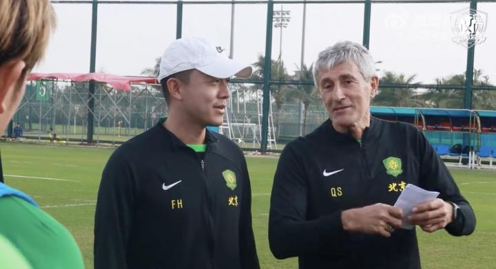 在北京国安队第二天的冬训开始前,新帅塞蒂恩向队员们发表了演说。