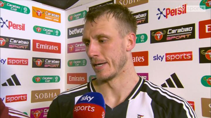 在英格兰联赛杯半决赛首回合客场2-0击败阿森纳之后,纽卡斯尔联后卫丹-伯恩接受了来自天空体育的采访。
