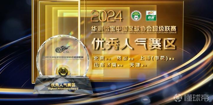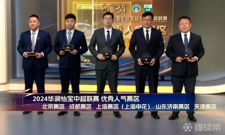 2024中超联赛颁奖典礼上,北京赛区、成都赛区、上海(申花)赛区、济南赛区以及天津赛区荣获了优秀人气赛区奖项。