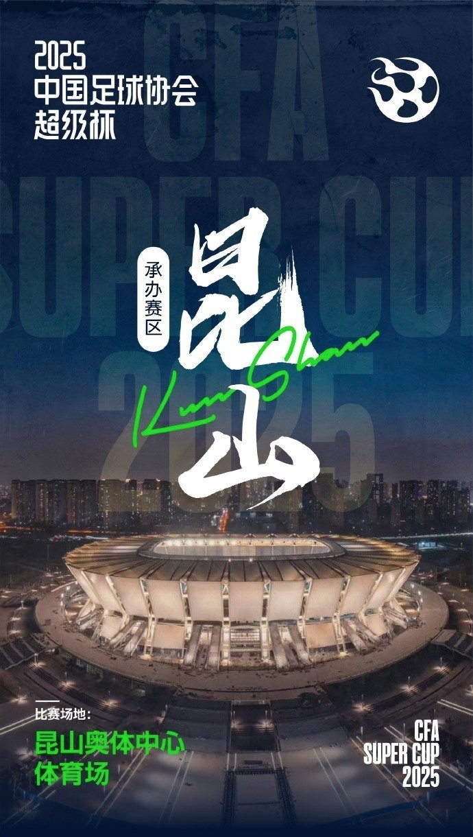 2025年2月7日19:35,2025中国足球协会超级杯将在昆山奥体中心体育场进行,比赛双方是上海海港vs上海申花。