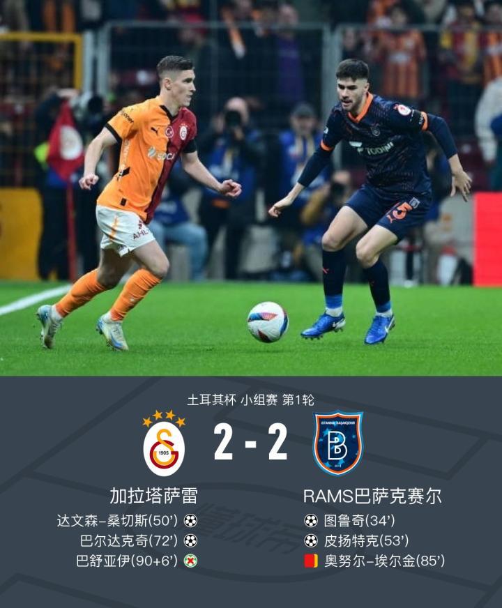 加拉塔萨雷2-2RAMS巴萨克赛尔,达文森、巴尔达克奇破门