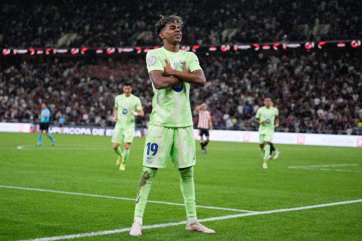 此役西超杯半决赛对阵毕尔巴鄂竞技,首发出战的亚马尔在比赛第52分钟接加维助攻破门,帮助巴塞罗那取得2-0领先。