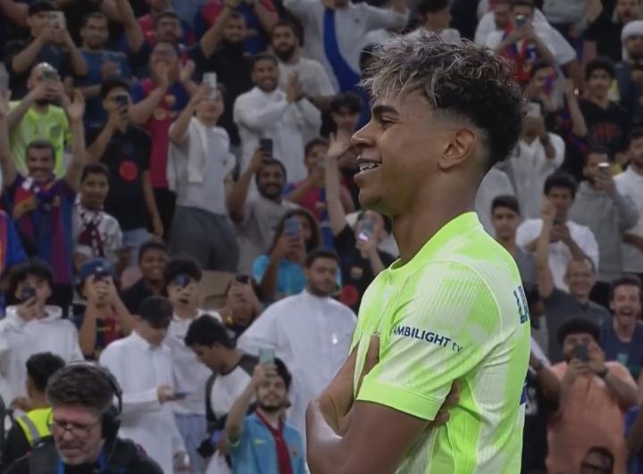 此役对阵毕尔巴鄂竞技,巴塞罗那凭借加维和亚马尔各入一球,取得2-0领先。