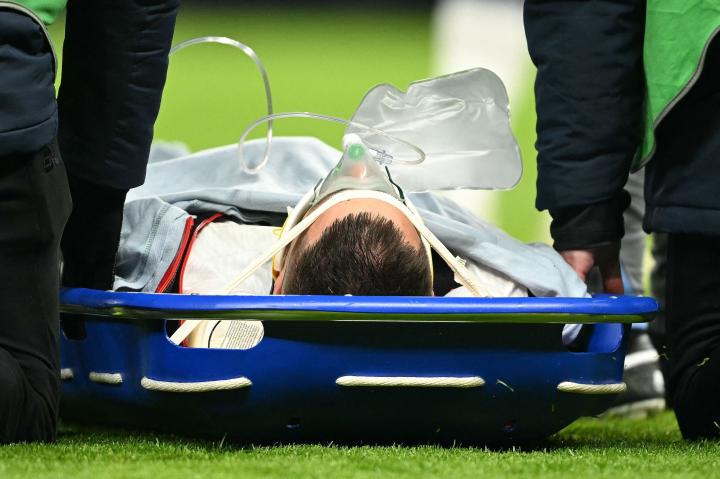 现场的医疗人员立即对本坦库尔展开了急救措施,并立即用担架将他抬出了场外。从现场的画面可以看出,本坦库尔已经被戴上了氧气面罩。