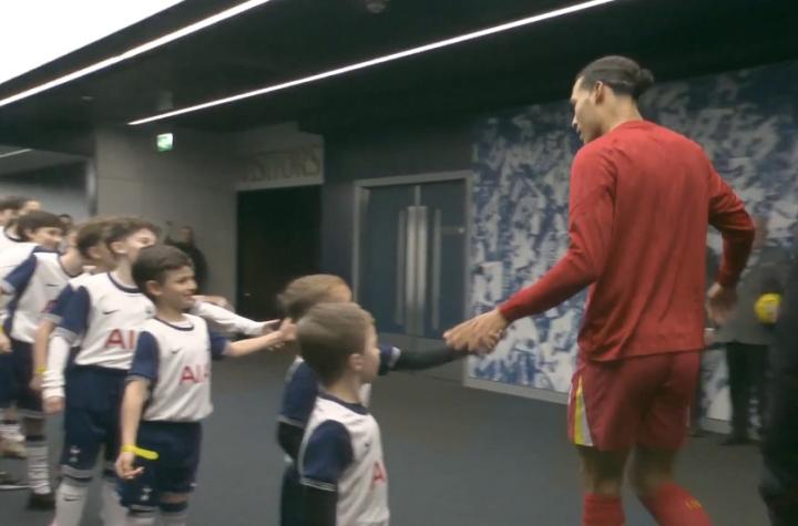 在这场杯赛开始前,球童们在球员通道等待着球员们。看到范戴克经过时,一名热刺的小球童喊道:“范戴克,来热刺吧,我们现在没有好的后卫。”